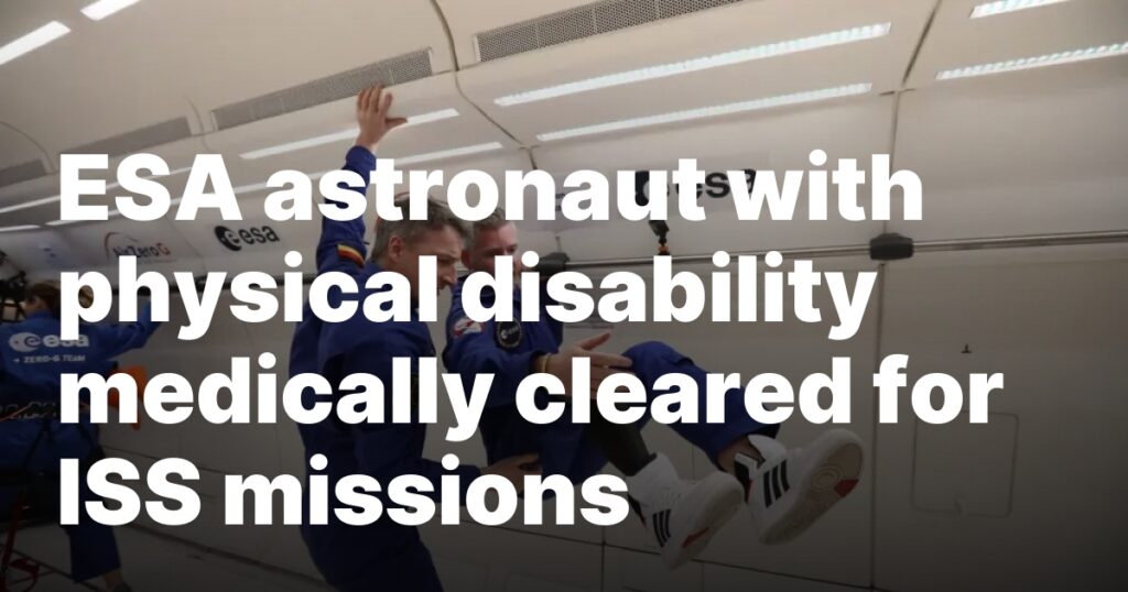 WASHINGTON — In a primary, a European astronaut with a bodily incapacity has been medically cleared for missions to the